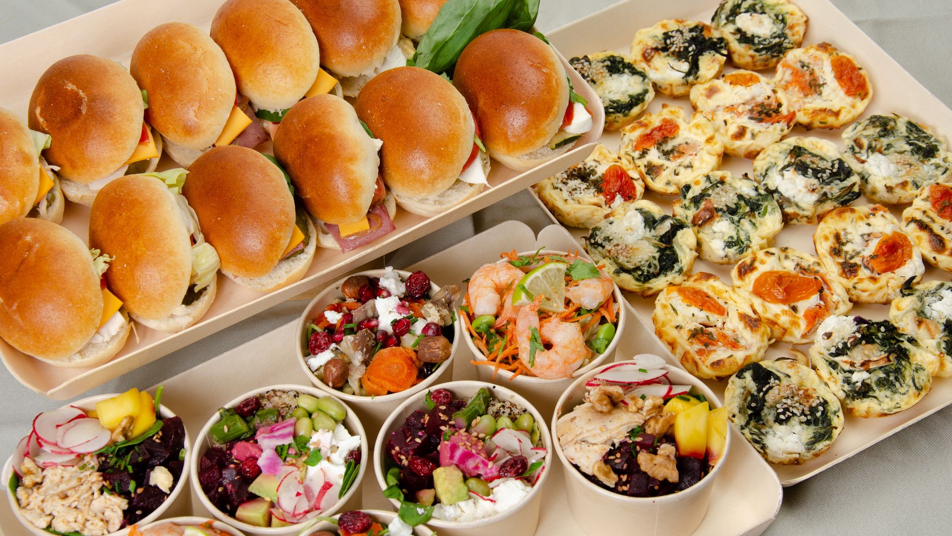 Une sélection de pièces sucrées et salées, parfaite pour régaler vos invités : mini sandwiches, mini salades, mignardises, brochettes…